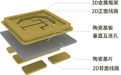 薄膜電路陶瓷封裝基板是一種通過磁控濺射薄膜金屬化與電鍍制程的技術(shù):即根據(jù)應(yīng)用需要,在高導(dǎo)熱的陶瓷基體上,采用薄膜金屬化及影像轉(zhuǎn)移方式制作2D金屬線路,然后采用TCV(Through Ceramic Via) 技術(shù)形成雙面布線間的垂直互連,最后采用堆疊技術(shù)獲得與陶瓷基體結(jié)合緊密的一體式3D金屬框架。基于薄膜電路工藝,通過磁控濺射實現(xiàn)陶瓷表面金屬化,通過電鍍實現(xiàn)銅層和金成的厚度大于10微米以上即DPC(DirectPlateCopper-直接鍍銅基板)。